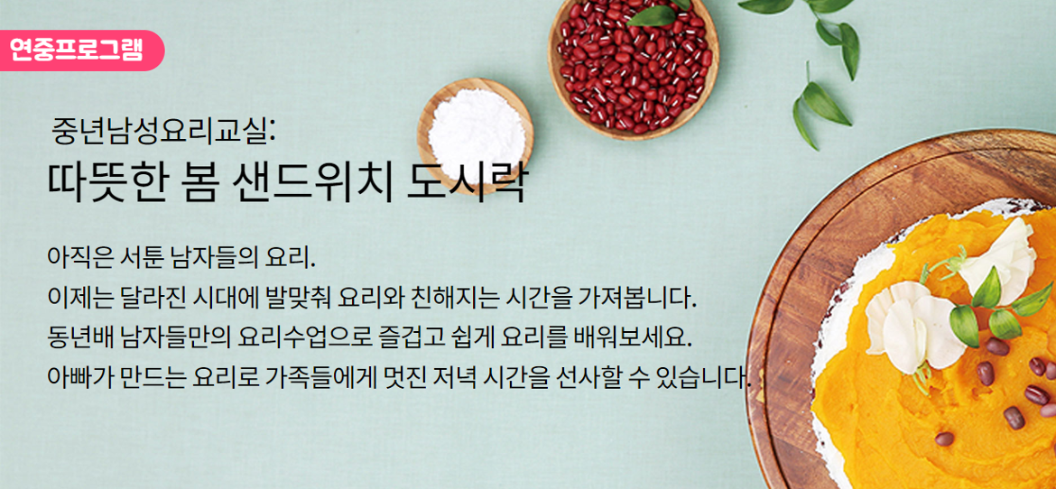 중년남성요리교실: 따뜻한 봄 샌드위치 도시락(3월 토요반)