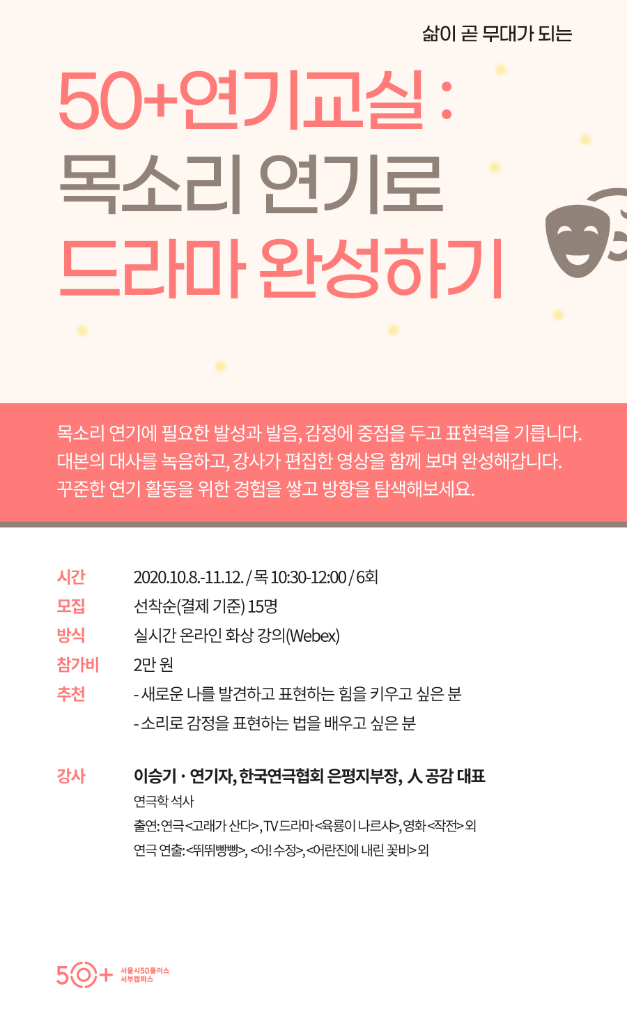50+연기교실 : 목소리 연기로 드라마 완성하기