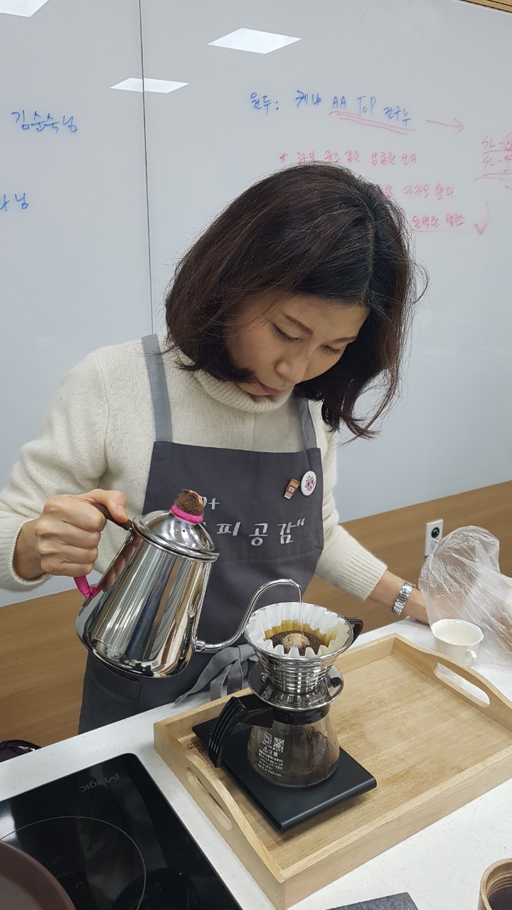 음미하는 행복한 시간을 제공하시며 손수 칼리타 웨이브 드립법을 상기시키십니다.